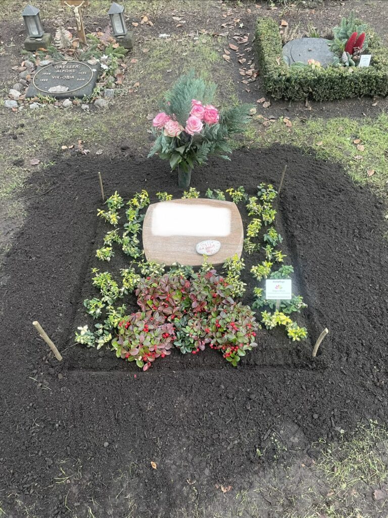 Hier ist es ebenso möglich auf kleinen Grabstätten eine große Wirkung zu entfalten. Entscheidend bei der Gestaltung ist letztlich, dass es einerseits im Sinne der oder des Verstorbenen wäre und andererseits den Hinterbliebenen in ihrer Trauer hilft. Hierzu versuchen wir mit Ihnen gemeinsam die bestmögliche Lösung zu erarbeiten.